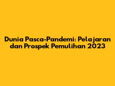 Dunia Pasca-Pandemi: Pelajaran Dan Prospek Pemulihan 2023