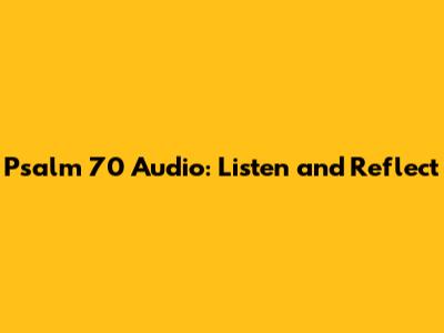 Hey guys! Ever feel like you're in a bind and need a little spiritual pick-me-up? Well, let's dive into Psalm 70 together. This psalm is a short but powerful cry for help, and listening to it can be super uplifting. We're going to explore why Psalm 70 is so special, how you can use audio versions to really connect with it, and what makes it relevant even today. So, grab your headphones, get comfy, and let's get started!