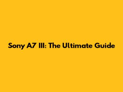 Sony A7 III: The Ultimate Guide